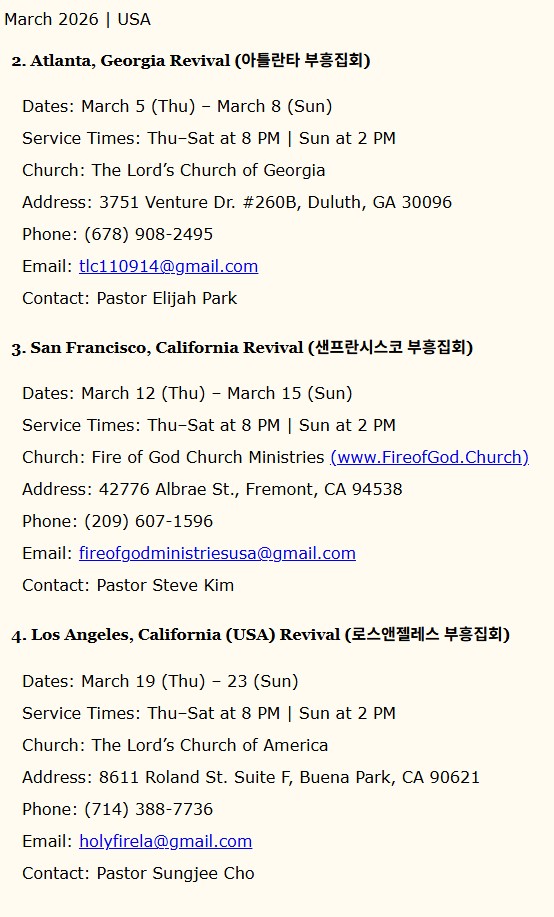 2026. 3월 미국집회 / 아틀란타, 샌프란시스코, LA